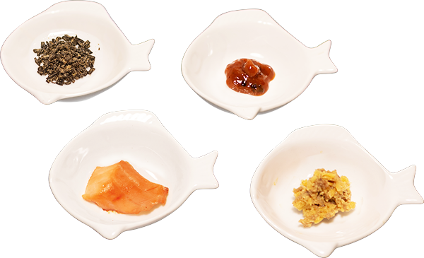 / −mit Lachs / −mit Ingwer-Miso-Fleisch